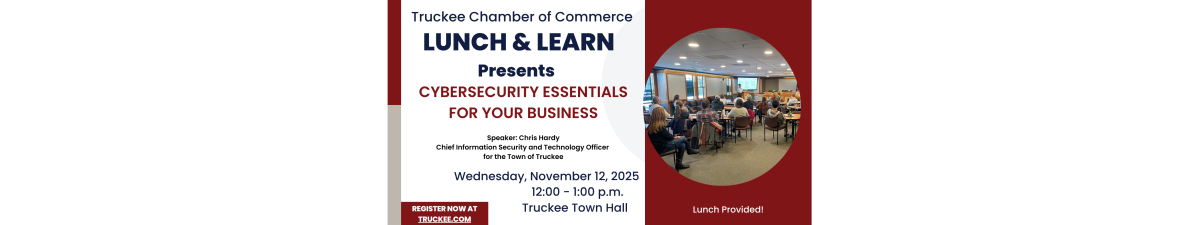 Join us for our November Lunch & Learn featuring Chris Hardy, Chief Information Security and Technology Officer for the Town of Truckee. Chris will discuss key cybersecurity practices every business should know, from protecting sensitive data to recognizing potential threats before they cause harm. He’ll also share insights on current trends in cybercrime and how small businesses can build resilience through proactive security measures.