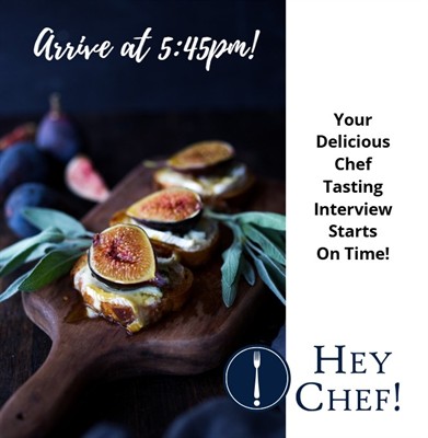 Dress photo-ready, please (we use images for social media). After the meal and cleanup HeyChef! conducts a post-cooking eval with the chef, so feel free to enjoy the experience and head out! No need to linger. If you enjoy your experience and support how HeyChef! builds the area's #1 source for culinary talent, we kindly ask you to leave a Google review following the event.